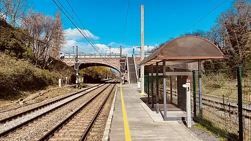Evere railway station (French: Gare d'Evere; Dutch: Station Evere)[a] is a railway station in the municipality of Evere in Brussels, Belgium. The station opened on 19 July 1926, is located under street level, and can be accessed via the Rue Auguste De Boeck/Auguste De Boeckstraat. The station lies on line 26, between Bordet and Meiser railway stations.[1] The train services are operated by the National Railway Company of Belgium (NMBS/SNCB).