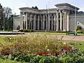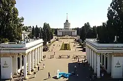 The Expocenter of Ukraine (VDNG) (Ukrainian: Експоцентр України (ВДНГ)), originally known as Exhibition of Achievements of the National Economy of Ukrainian SSR (Ukrainian: Виставка досягнень народного господарства УРСР) or VDNH of Ukrainian SSR (Ukrainian: ВДНГ УРСР), is a permanent multi-purpose exhibition complex in the Teremky neighborhood of Kyiv, Ukraine. Located on the outskirts of the Holosiiv Forest, a large portion of which has been converted into a park zone, the expo specializes in demonstrating Ukrainian achievements in the sphere of industry, science etc.