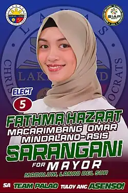 - ^ a b c Ontay, Datu (May 19, 2025). "Alhamdulillah and Congratulation Honorable Mayor Fathma Macarimbang Mindalano Omar Sarangani-Dimaporo Asis". www.facebook.com. Facebook. Retrieved August 8, 2025.
