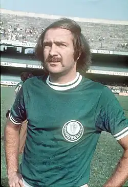 During the next five years, he would be a part of the Palmeiras dynasty that won the 1972 and 1974 Campeonato Paulista as well as the 1972 and 1973 Campeonato Brasileiro Série A, earning the 1974 and 1975 Ramón de Carranza Trophies due to his contributions as he would play in 269 games with 61 goals by the time of his departure from the club.[1] He would then briefly play for Capibaribe in the 1976 season before shortly ending his career as a player and moving on to a managerial career where he would coach for Palestra Itália, initially as the youth coach before moving on to the senior team where he would manage for 79 matches within three seasons.[3] He would also manage his club of Palmeiras in the 1980s.[5]