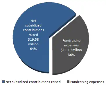 In 2009, the overhead cost of fundraising for the top three parties exceeded the net private funds they raised. They spent a combined $11.2 million on fundraising at the party level (riding-level expenses not included), according to their 2009 annual party returns, to raise approximately $10.3 million in net private funds.[4]