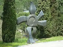In 1955, Fernand Léger bought a villa in Biot, called Mas Saint-André, with the intention of installing polychrome ceramic sculptures in his garden, but died soon afterwards.[1] The museum was built on the property after the death of the artist in 1955 by Nadia Léger and Georges Bauquier, to designs by the architect Andreï Svetchine; an earlier design by Paul Nelson had been rejected. Construction began in 1957, and the museum opened in 1960.[2] The gardens were designed by Henri Fish and contain sculptures based on Léger's work.[3]