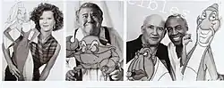 Fish Police characters and their voice actors from left to right: Angel Jones voiced by JoBeth Williams, Crabby voiced by Buddy Hackett, Chief Abalone voiced by Ed Asner, and Det. Catfish voiced by Robert Guillaume