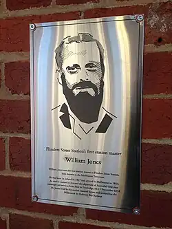 The first terminus had a single platform 30 metres (98 ft 5 in) long, and was located beside the Fish Market building on the south-west corner of Swanston and Flinders Streets.[13] An additional platform was provided in 1877, along with two overhead bridges to provide passenger access, followed in 1879 by additional timber and corrugated iron buildings, and a telegraph station.[10] The first signal boxes were opened at the station in 1883, one at each end of the platforms.[14] By the 1890s, a third island platform had been constructed.[14]