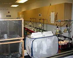The research space includes laboratories focusing on molecular genetics, scanning electron microscopy, image analysis, conservation and captive propagation of endangered species, optical microscopy, and specimen preparation, as well as classrooms and offices for 12 faculty curators, collection managers, and other staff. Some of the research laboratories and collections can be viewed through glass panels at the back of the museum.