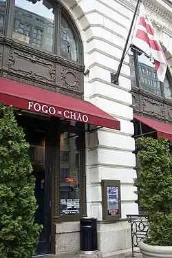 Fogo de Chão, Inc. (Brazilian Portuguese: [ˈfoɡu dʒi ˈʃɐ̃w]; Portuguese for 'Ground Fire') is a Brazilian chain of rodízio-style steakhouses (churrascarias) founded in 1979 by brothers Arri and Jair Coser, along with Jorge and Aleixo Ongaratto.[4] The restaurant chain specializes in Southern Brazilian cuisine, primarily serving churrasco barbecued meats and traditional side dishes.[5] First established in the Brazilian city of Porto Alegre, the chain has over 70 locations throughout Brazil, the United States (including Puerto Rico), Saudi Arabia, the UAE, and Mexico as of 2023.[6]