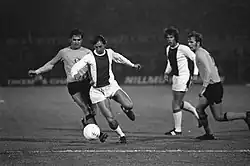 Frank Ganzera (first from right) playing for Dynamo Dresden in a match against Ajax in 1971