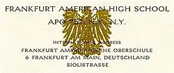 Frankfurt American High School (FAHS) was a Department of Defense Dependents Schools (DoDDS) system school located on what was once known as the Abrams Complex in Frankfurt, Germany. One of DoDDS original six high schools in Germany, the school served the children of American military, government and civilian personnel from 1946 until its closing in 1995.[1] Originally known as the "Maroon Raiders", the "Eagle" was adopted as the school's mascot during the 1948–49 school year. The school's colors are black and gold. The motto is "Eagles Über Alles."