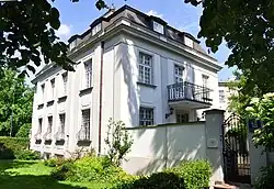 The Frascati neighbourhood was inhabited by many notables and dignitaries, among them nobles, financiers, business tycoons, generals and statesmen like the much-detested Nikolay Novosiltsev, the council commissar in the Congress Kingdom of Poland.[13] With the private gardens parceled in 1929, several modern villas were erected north of the Polish parliament, around today's Nullo, Frascati, Konopnicka and Senacka streets.[14] These were once owned or occupied by Warsaw's wealthiest and most important residents.[14][5] The majority of buildings and infrastructure survived the Second World War intact, particularity the ornate tenement houses at Wiejska Street.[15] It remained an exclusive suburb under the Polish People's Republic, frequently visited by heads of state and communist officials.[16] The large headquarters building of the Polish United Workers' Party (PZPR) was completed in 1952 on Frascati's northern edge.