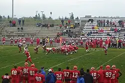 From 1956 to 1975, Cal Poly and the Bulldogs traded the "Victory Bell Trophy", which was donated to Cal Poly in 1952.[17] The trophy, which weighed about 200 pounds,[18] was ultimately retired due to repeated theft.[19] The two programs didn't play each other from 1986 through 2009, but brought back matchups in 2010,[20] 2013,[21] 2021[22] and 2022.[23] In the 46-game all-time series, Fresno State leads 34–10–2.
