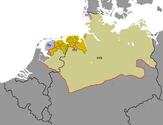 Friso-Saxon (Dutch: friso-saksische tongvallen,[1] friso-saksisch) is a group of West Germanic dialects found around the North Sea coast of the Netherlands and Germany, in an area historically known as Frisia.[2][3] They are dialects of Low German/Low Saxon that have experienced strong influence from a Frisian language.