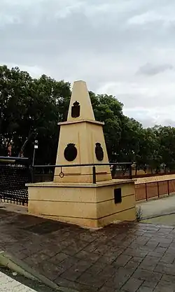 In 1939 shortly before the end of the civil war, Republican forces sank the troop carrier Castillo de Olite as it was leaving the port of Cartagena.[4] Of the 2112 people on board 1476 were killed, 342 were injured and 294 were taken prisoner. The captured were transferred to Fuente Álamo where they were imprisoned. In 1966, in recognition of the services given by the people of the town, General Francisco Franco awarded Fuente Álamo with the title "Muy Noble y Muy Leal Villa" (Most noble and most loyal town).