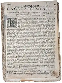 La Gaceta de México was a Spanish language newspaper published in New Spain. It was first published in 1722 making it the first newspaper to be published in Hispanic America. It was founded by Juan Ignacio María de Castorena Ursúa y Goyeneche, a journalist, Catholic priest, and later Bishop of Yucatan. He was evidently a Jesuit, as he was educated under Jesuit direction in the Colegio Real de San Ildefonso, and the Seminario de la Sagrada Compañía de Jesús de la Corte de México, and had many Jesuit associates.[1][2][3][4][5][6] He is considered the first journalist in Latin America for having created the periodical in Mexico City, whose first issue was published on January 1, 1722.[7] He was a friend of Sor Juana Inés de la Cruz, editing some of her works and defending her right to cultivate writing literature.[7]