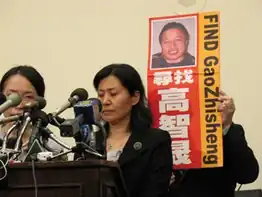 Gao Zhisheng[1] (born 20 April 1964) is a Chinese human rights attorney and dissident known for defending activists and religious minorities and documenting human rights abuses in China. Because of his work, Zhisheng has been disbarred and detained by the Chinese government several times, and severely tortured. He disappeared in February 2009 and was unofficially detained until December 2011, when it was announced that he had been imprisoned for three years. His commitment to defending his clients is influenced by his Christian beliefs and their tenets on morality and compassion.[3]