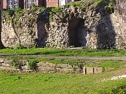 Past the railway culvert, the river curls through the gardens and parkland of what is known as the "Walks". In this parkland remnants of the town wall can still be seen. Also in this vicinity it is thought there was another watermill for corn called the Oyle Mil. The river now heading westwards again reaches London Road where it is thought once stood another watermill called Town Mill. The mill probably stood at the top of the Millfleet near the almshouses. The mill was a single-storey stone building with the two-storey miller's house adjacent and probably stood on the same site as the earlier Swagges Mill. The mill was probably demolished to make way for the London Road in the 19th century.