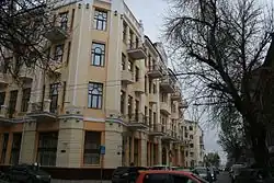 Starting from Beregovaya Street, Gazetny Lane almost at once introduces a cultural heritage site to a passer-by – the mansion of Pyotr Nikolayevich Wrangel, one of the main military leaders of the White Army during the Russian Civil War and the Commander-in-Chief of the Russian army in Crimea and Poland, who also participated in the Russo–Japanese War and the World War I. The house was built in 1885 upon the project of Nikolay Alexandrovich Doroshenko.[2] The frontage is notable for lavish decoration and partly extant stucco work. Unfortunately, today the house of Wranghel remains in a neglected state. The dilapidated condition of the building was compounded by a barbarous act in the beginning of 2017.[3]