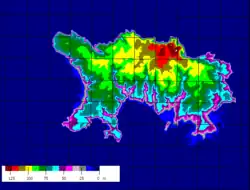 Jersey is facing localised impacts due to anthropogenic climate change. The island is party to the Kyoto Protocol but does not have an emissions cap.[9] In 2017, Jersey has emissions of around 400 ktCO2 eq., a decrease of around 350 ktCO2 eq since the peak in 1998.[10] Under a 3 °C rise in temperature, Jersey may have four to five times the number of hot days in summer and a 45% decrease in summer rainfall.