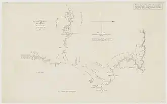 Evans generally followed the route of Blaxland, Lawson and Wentworth, reaching the end of their route on 26 November 1813 at a point that Evans then named Mount Blaxland. Evans' party then moved on and visited the Fish River area and further west near the junction of the now named Fish and Campbell Rivers and described two plains in his view, the O'Connell Plains and the Macquarie Plains.[2] It was on 9 December that he reached the site of present-day Bathurst.[1]