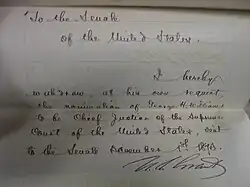 In the early years of the Oregon Supreme Court, the three justices also rode circuit and acted as trial level judges. As a presiding judge while riding circuit, Williams presided over the Holmes v. Ford case that freed a slave family since slavery was illegal in the territory.[3] In 1857, he was a member of the Oregon Constitutional Convention held before the establishment of Oregon as a U.S. state.[4] Williams remained on the court until 1858 when he resigned from the bench.[5] He then moved to Portland, Oregon, where he resumed the practice of law.[6]