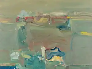 After teaching at the California College of the Arts, and Stanford University, he was appointed a full professor at the University of California, Berkeley in 1964.[2] By 1958, he was experimenting with methods and materials, producing what appeared to be the first color lithographs by a West Coast Abstract Expressionist that were widely shown. They were included in 13 exhibitions in 1958 alone.[3] In 1960, Willem de Kooning visited Miyasaki's studio to try his hand at lithography. De Kooning, with the help of Miyasaki and Nathan Oliveira, created at least two abstract lithographs.[4]