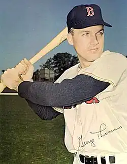 George Edward Thomas Jr. (born November 29, 1937) is a retired American professional baseball player. Primarily an outfielder, he played at least one game at every position except pitcher during a 13-year career in Major League Baseball for the Detroit Tigers (1957–58; 1961; 1963–65), Los Angeles Angels (1961–63), Boston Red Sox (1966–71) and Minnesota Twins (1971). He also was an assistant coach (1972–78) and head baseball coach (1979–81) at his alma mater, the University of Minnesota, after his active career ended. The native of Minneapolis threw and batted right-handed, stood 6 feet 3 inches (1.91 m) tall and weighed 190 pounds (86 kg).