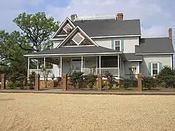 The main house was built in 1898 in Late Victorian style. It is a two-story frame house on a brick pier foundation.[2]