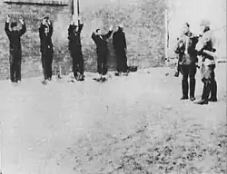 ![]() Polish hostages moments before execution. Old Market Square in Bydgoszcz, 9 September 1939 | |