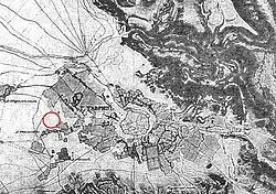 Location of the Ghazaniyya district (red circle), west of Tabriz old city.