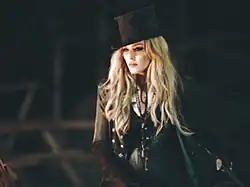 Madonna in the music video of the song, wearing the Chrome Hearts designed greatcoat with top hat, portraying a Stevie Nicks-like character