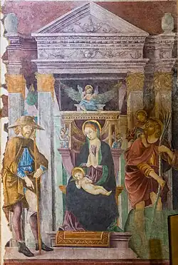 Fresco by Giovanni Maria da Brescia of Madonna with the Saints Rochus and Christopher in the Christ Monastery church in Brescia.