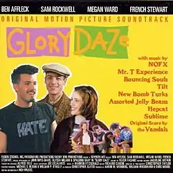 The soundtrack album for Glory Daze was released by Kung Fu Records, Escalante and Fitzgerald's recently launched independent record label. The album includes two songs not used in the film: "Joe Lies (When He Cries)" by The Bouncing Souls, and the previously unreleased Vandals song "Change the World with My Hockey Stick". Also, rather than the original Bad Religion version of "We're Only Gonna Die" used in the film, the album substitutes a live recording of a cover version performed by Sublime. Other songs used in the film but not included on the soundtrack album include "Kill All the White Man" by NOFX, "Clown Show" by Ednaswap, "She Ballin'" by Chappie Chap, and "Acetone" by Mudhoney.
