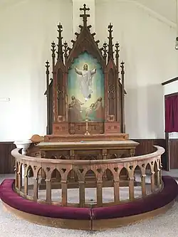 The church now stands alone on the gently sloping side of Grassy Butte with a beautiful view of the surrounding area. The altar in the church was imported from Norway and, generally, the church is well-preserved. The cemetery located in the back of the church has graves of many original church founder families.[5]