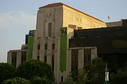 Later in his career, Kaufmann worked primarily in the Art Deco style, with a personal emphasis on massively thick, streamlined concrete walls which gave his buildings a very distinctive appearance. Kaufmann's buildings as a result took on a very "mechanical" appearance, often resembling huge versions of old-fashioned appliances. The Los Angeles Times' headquarters is a perfect example of this. His work was also part of the architecture event in the art competition at the 1936 Summer Olympics.[6]