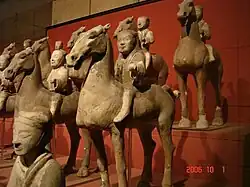 Ceramic statues of horse-drawn chariots from the tomb of the wife of Liu Xu (劉胥), Prince Li of Guangling (廣陵厲王), a son of Emperor Wu of Han who committed suicide in 53 BC