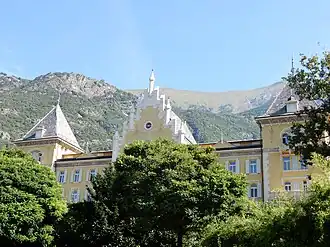 The building was built in 1908 on behalf of Italian entrepreneur Stefano Billia, who already managed the stagecoach service between Ivrea and Saint-Vincent. At that time, Saint-Vincent was an emerging resort destination thanks to the renowned thermal waters of the Fons salutis. At its opening, the hotel had 138 rooms with a total of 200 beds.[1]