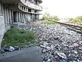 The Grande Hotel has deteriorated, however. With only 116 hotel rooms, it now provides shelter for a fluctuating population of around 1,077 inhabitants (Ivo 2008), with large families inhabiting a single room. They do not pay any rent and cannot claim a right of ownership. There is little formal maintenance of the collective space, resulting in accumulating garbage, leaking rain water, open elevator shafts and inaccessible stairs. The Olympic swimming pool, now polluted, is used for bathing by inhabitants who cannot afford to buy water at the privately owned water pump opposite the Grande Hotel. According to the local Red Cross, there is a high risk of cholera, diarrhoea, HIV/AIDS, malaria and scabies in the Grande Hotel. The water, sewer and electricity infrastructures have been removed and sold in order to obtain money for food and water. The parquet floor is used as fuel for cooking.