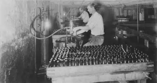 1917 image of J. Grossman's Sons adding Grapico soft drink to bottles to be sold to consumers.