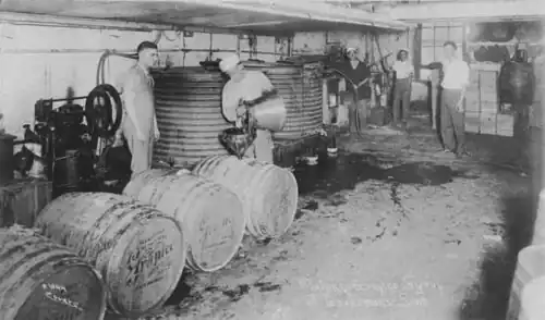 1917 image of J. Grossman's Sons packaging Grapico syrup in barrels for use by Grapico Bottling Company