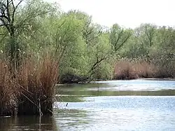 The area was covered in numerous trees, including aspen, oak, and willow, and was inhabited by hares, foxes, deer, wild pigs, martens, and wolves.[2] Upon the creation of the Kakhovka Reservoir, the former landscape was destroyed, and the inundated area became inhabited by fish instead. In turn, when the reservoir was drained, the fish population died out, totaling 11.4 thousand tons of dead fish.[3] By summer of 2024, the Great Meadow was covered by a continuous young willow forest, and started getting repopulated by land animals. The area will go through ecological succession that, in at least 30 years, will result in the formation of a mature forest. This large-scale phenomenon allows the study of the development of forest ecosystems in river valleys that was not possible before.[4]