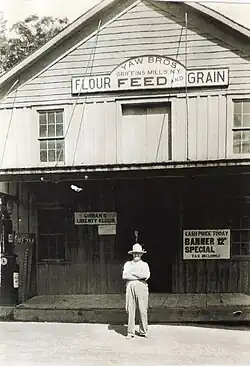 The Yaw Brothers, known throughout western New York, operated the business for 56 years and were known for their accurate measurements in lumber sawing. Buckwheat flour was a specialty ground by the brothers. It was the only mill over a large area doing this type of grinding. The flour, eagerly bought for its excellent quality, was packaged in 5-, 10-, and 25-pound sacks labeled with the Yaw Brothers trademark.[6]