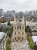 The Sacred Heart Cathedral, properly the Cathedral of the Sacred Heart of Jesus and also known as the Stone Chamber or Stone House by locals,[2] is a Gothic Revival Roman Catholic cathedral in Guangzhou, China. It is the seat of the Archbishop of Guangzhou. The cathedral is located at 56 Yide Road (一德路56号), on the north bank of the Pearl River at the heart of the old district. It is one of the few cathedrals in the world to be entirely built of granite, including all the walls, pillars, and the twin towers.