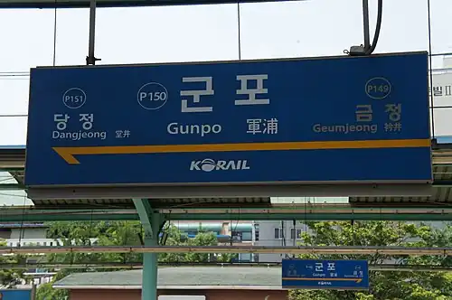 1. ^ a b 군포역 (in Korean). KRIC. Retrieved 2015-10-29.