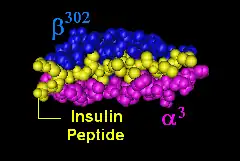Rendering of HLA-DQ8 with immundominant insulin peptide in the binding pocket.
