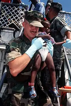 {{cite book}}: CS1 maint: multiple names: authors list (link) - ^ a b c McMichael, William (July 3, 1994). "Haitians Flee Fear, Pain U.S. Military Works Overtime". Daily Press, Newport News, Va.