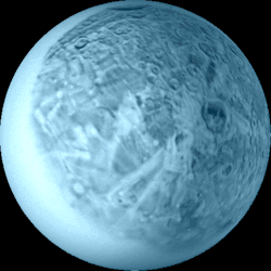 A map of Oberon. The large crater with the dark floor (right of center) is Hamlet.
