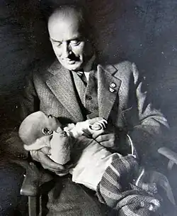 Hans Kohnert at the christening of his first granddaughter with golden NS party badge and Wehrwirtschaftsführer pin, March 1944