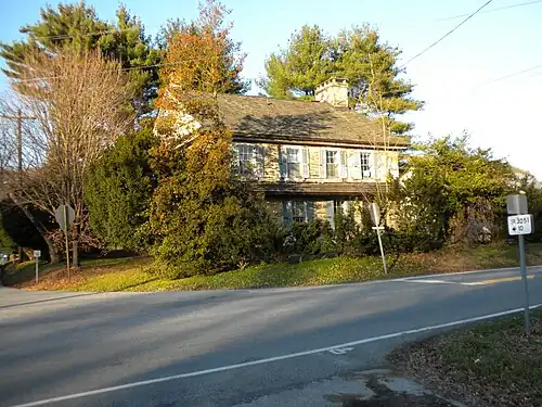 Brothers George and Michael Harlan were Quakers who were born in Durham, England and immigrated to Pennsylvania about 1687 from County Down, Ireland. Michael's son George Harlan built the house in the forks of the Brandywine c.1724. In that year the Free Society of Traders sold 7,000 acres (28 km2) to Nathaniel Newlin, which became Newlin Township in Chester County. Newlin immediately sold some of the land, including 169 acres (0.68 km2) in the forks of Brandywine Creek sold to George Harlan. A son, Joel, was born to George and Mary Harlan in 1724 in Newlin Township, presumably in their new house. The house was probably the first in the township. Tax assessments in the township were first made in 1739, and until 1760, Joel's older brother John Harlan paid the taxes on the house and farm. Sometime between 1758 and 1760 Joel returned to Newlin Township after living in other locations in Chester County, took ownership of the farm and built an addition to the house. Both John's and Joel's families apparently lived in the same house, but Mason and Dixon's Journal always refers to the "John Harland farm" or simply the "Harland farm." John Harlan died by drowning in the Brandywine in 1768. The original house is two stories measuring 25 feet (7.6 m) by 16 feet (4.9 m), constructed of stone. The c.1758 addition was also constructed of stone and measures 25 feet (7.6 m) by 13 feet (4.0 m). A small frame addition was built in the nineteenth century.[3]