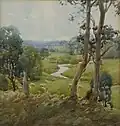 In 1927 he was co-opted beside Arthur Streeton; WB McInnes, Charles Wheeler, Napier Waller, Paul Montford and Alice Bale, by the National Gallery of Victoria trustees' Special Committee George Swinburne, JT Collins, John Longstaff and Norman MacGeorge to examine and report, employing their judgement as artists, on a consignment of Felton Bequest purchases of classical European art, most of which were refused by the committee.[14] He promoted a Herbert ‘school’ of watercolour, an influence on following representational watercolourists. His art was used in designs for postage stamps and some promotional tourist posters.[2][8]