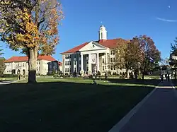 Harrisonburg is home to James Madison University (JMU), a public research university with an enrollment of over 20,000 students,[12] and Eastern Mennonite University (EMU), a private, Mennonite-affiliated liberal arts university. Although the city has no historical association with President James Madison, JMU was nonetheless named in his honor as Madison College in 1938 and renamed as James Madison University in 1977.[13] EMU largely owes its existence to the sizable Mennonite population in the Shenandoah Valley, to which many Pennsylvania Dutch settlers arrived beginning in the mid-18th century in search of rich, unsettled farmland.[14]