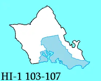East Honolulu, East Kapolei, 'Ewa Beach, 'Ewa Gentry, 'Ewa Villages, Hālawa, Hickam Housing, Honolulu, Iroquois Point, Kalaeloa (part; also 2nd), Mililani Mauka, Ocean Pointe, Pearl City, Waikāne, Waikele, Waimalu, Waipahu, Waipi'o, Waipi'o Acres, West Loch Estate